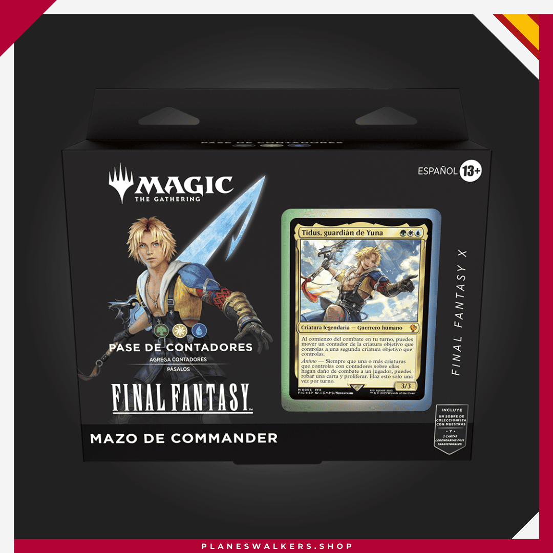 En Commander, cuatro jugadores se reúnen para demostrar su fuerza y sus dotes estratégicas… y solo una persona puede alzarse con la victoria. Los mazos de Commander de 100 cartas de Magic: The Gathering—FINAL FANTASY están listos para usar, así que los fans de Commander solo tienen que pasarse por tu tienda, hacerse con uno y empezar a jugar.