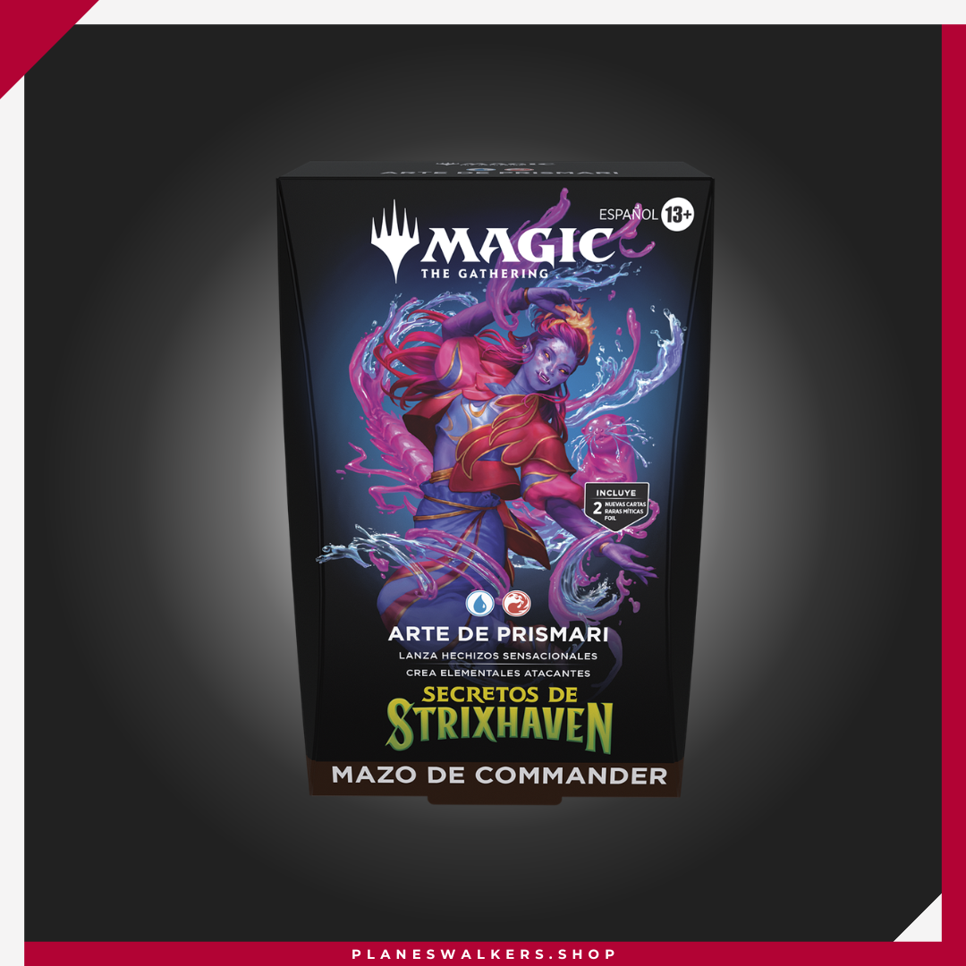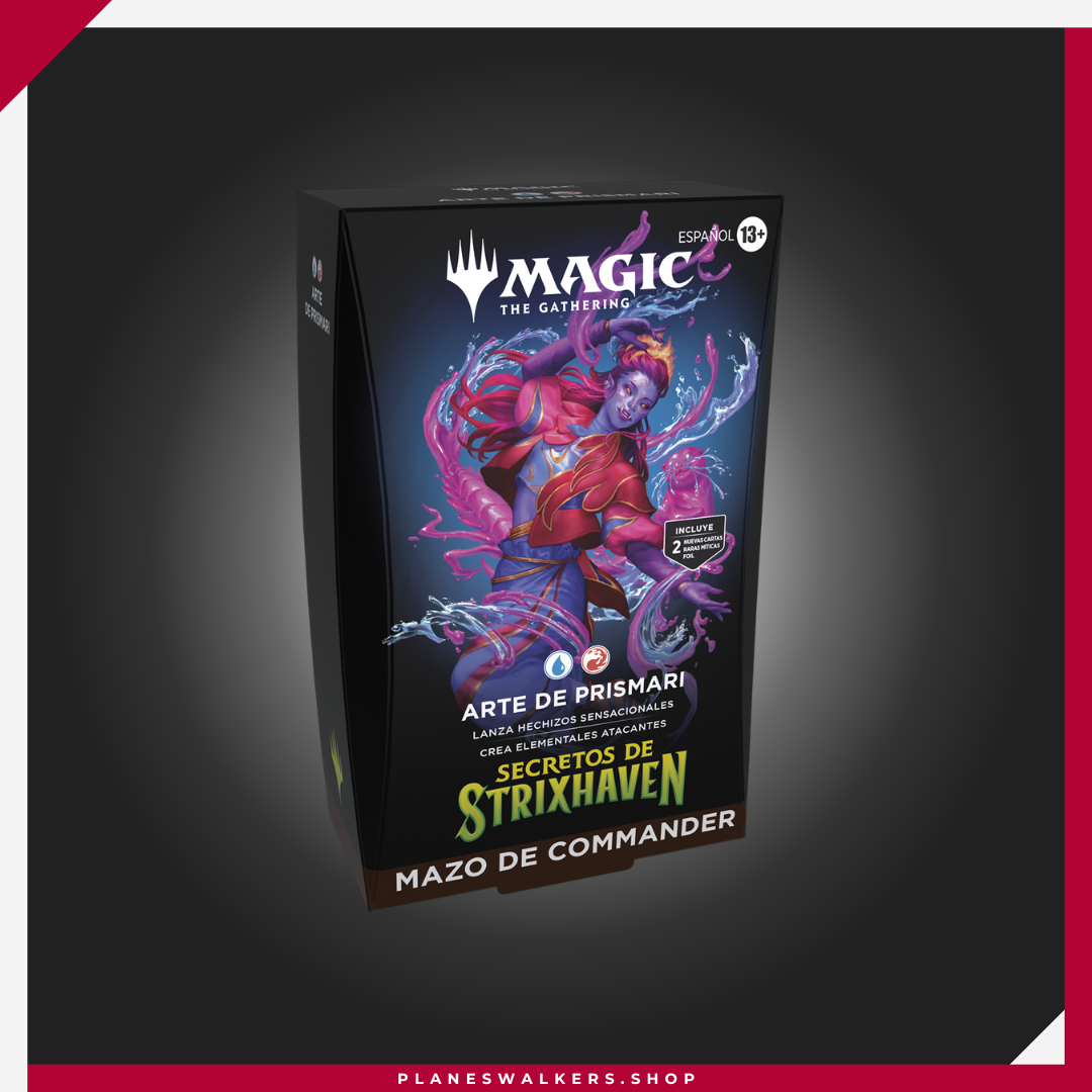 Explora el formato para varios jugadores más popular de Magic con cinco mazos de 100 cartas listos para jugar, cada uno con un estilo de juego bicolor único. Elige tu facultad de estudio de la magia y amplia tu educación en el gran mundo de Arcavios. Cada mazo de Commander de Secretos de Strixhaven incluye dos cartas de criatura legendaria raras míticas foil tradicionales con ilustraciones sin borde que puedes utilizar de comandante. Además, cada mazo incluye 12 cartas de Commander nunca vistas en Magic: The Gathering.