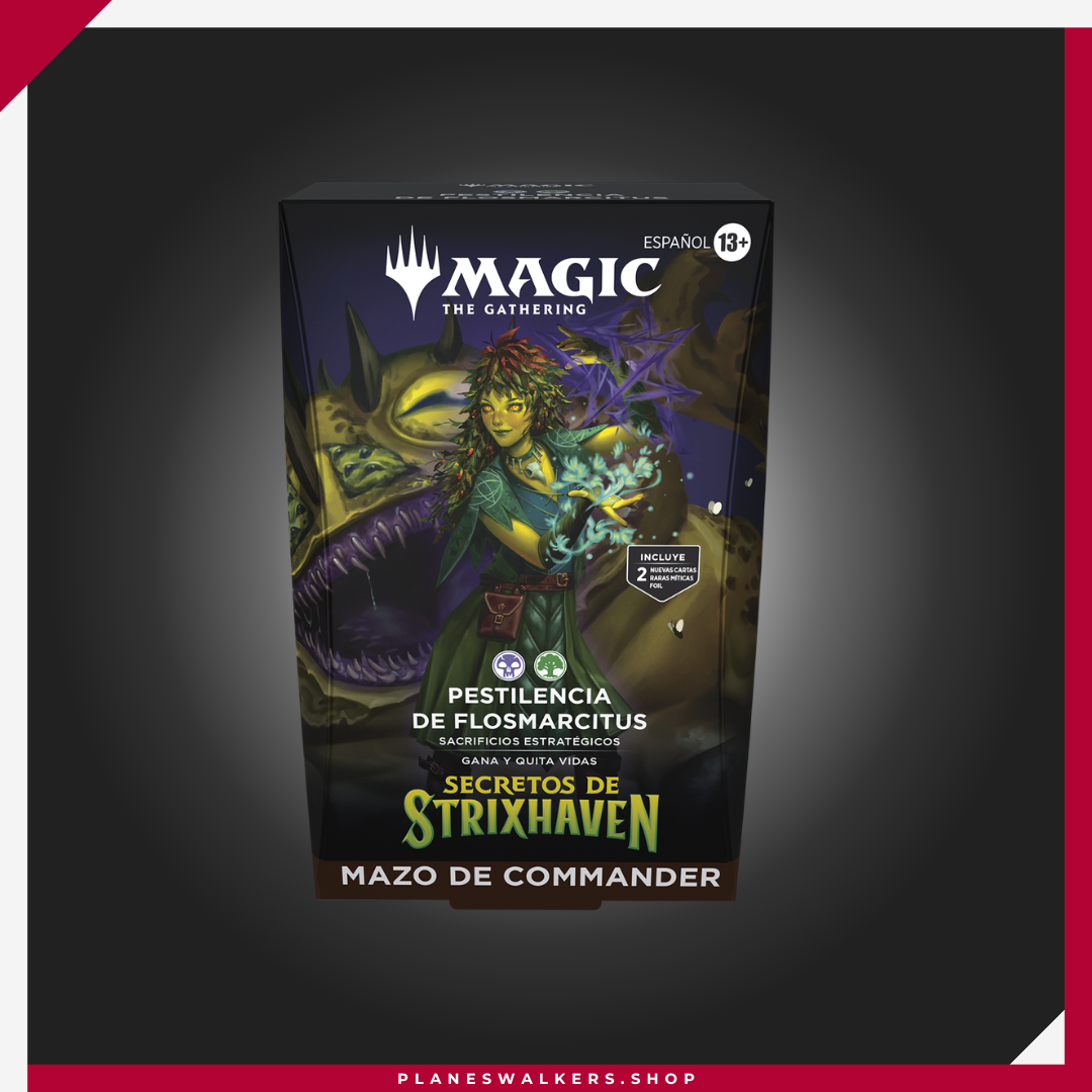 Explora el formato para varios jugadores más popular de Magic con cinco mazos de 100 cartas listos para jugar, cada uno con un estilo de juego bicolor único. Elige tu facultad de estudio de la magia y amplia tu educación en el gran mundo de Arcavios. Cada mazo de Commander de Secretos de Strixhaven incluye dos cartas de criatura legendaria raras míticas foil tradicionales con ilustraciones sin borde que puedes utilizar de comandante. Además, cada mazo incluye 12 cartas de Commander nunca vistas en Magic: The Gathering.