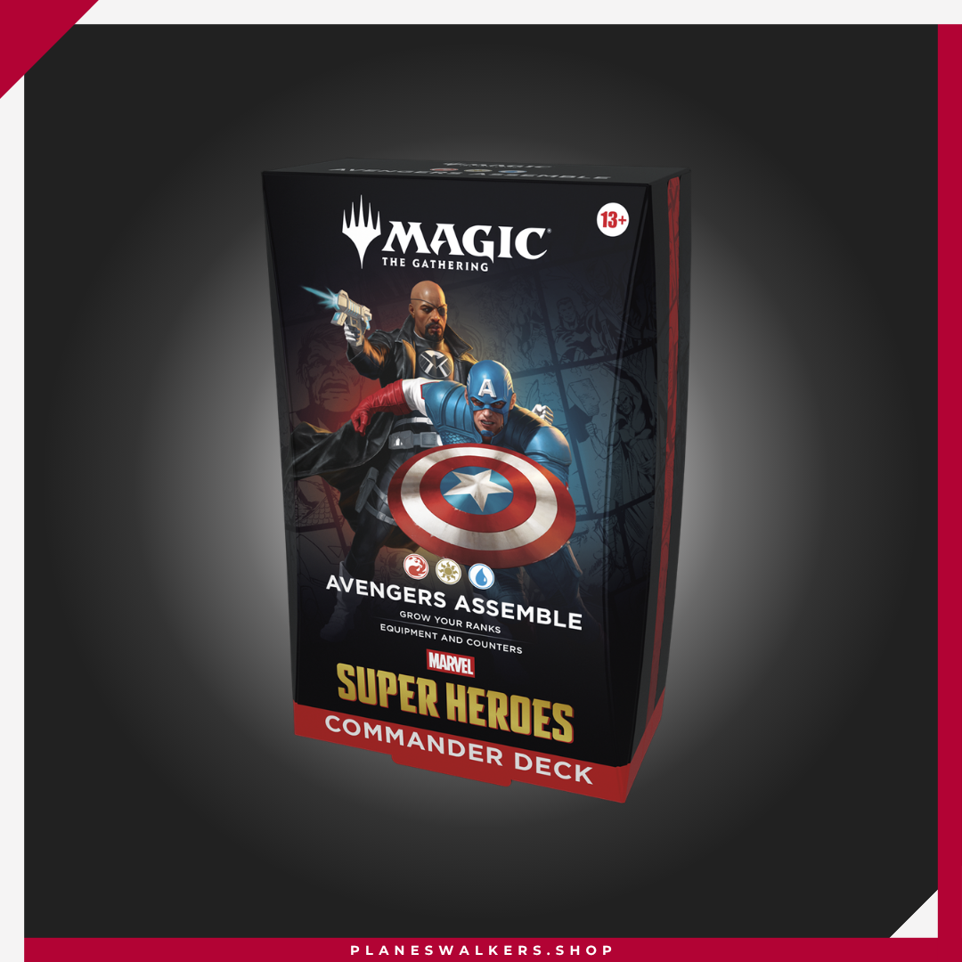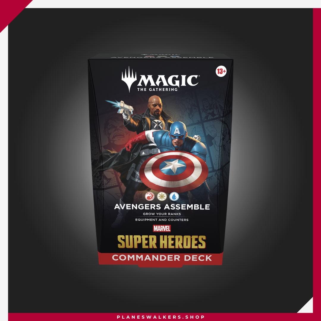 ¡El universo de Marvel llega en todo su esplendor! Un grandísimo equipo de pesos pesados da el salto de los cómics al campo de batalla y el destino del mundo está en juego. Crea tu superequipo de ensueño de Héroes y Villanos, equípalos con artefactos emblemáticos y desata sus devastadoras habilidades. Vuela, ataca y aplasta para lograr la victoria en Magic: The Gathering | Marvel Super Heroes.