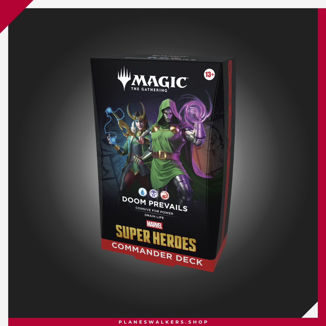 ¡El universo de Marvel llega en todo su esplendor! Un grandísimo equipo de pesos pesados da el salto de los cómics al campo de batalla y el destino del mundo está en juego. Crea tu superequipo de ensueño de Héroes y Villanos, equípalos con artefactos emblemáticos y desata sus devastadoras habilidades. Vuela, ataca y aplasta para lograr la victoria en Magic: The Gathering | Marvel Super Heroes.