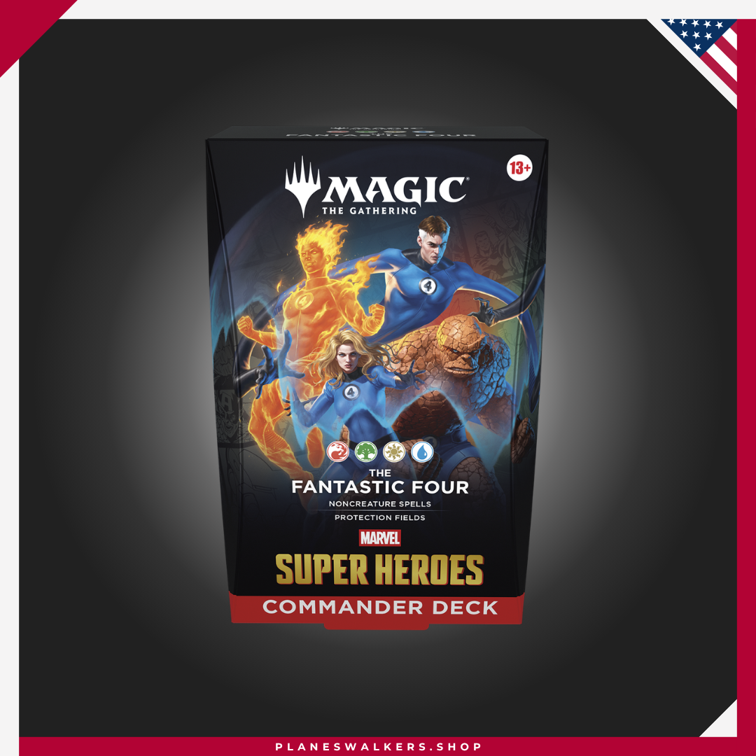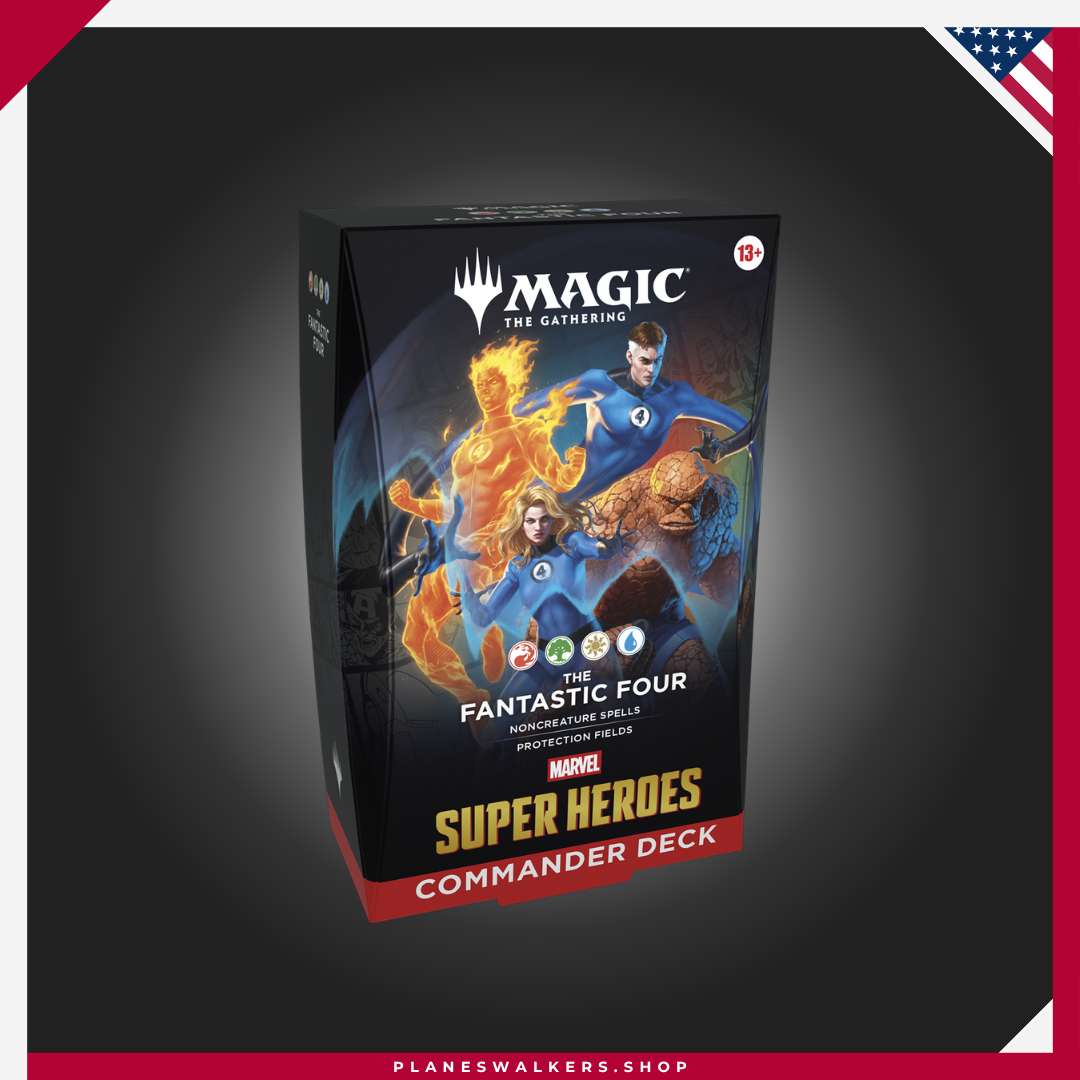 ¡El universo de Marvel llega en todo su esplendor! Un grandísimo equipo de pesos pesados da el salto de los cómics al campo de batalla y el destino del mundo está en juego. Crea tu superequipo de ensueño de Héroes y Villanos, equípalos con artefactos emblemáticos y desata sus devastadoras habilidades. Vuela, ataca y aplasta para lograr la victoria en Magic: The Gathering | Marvel Super Heroes.