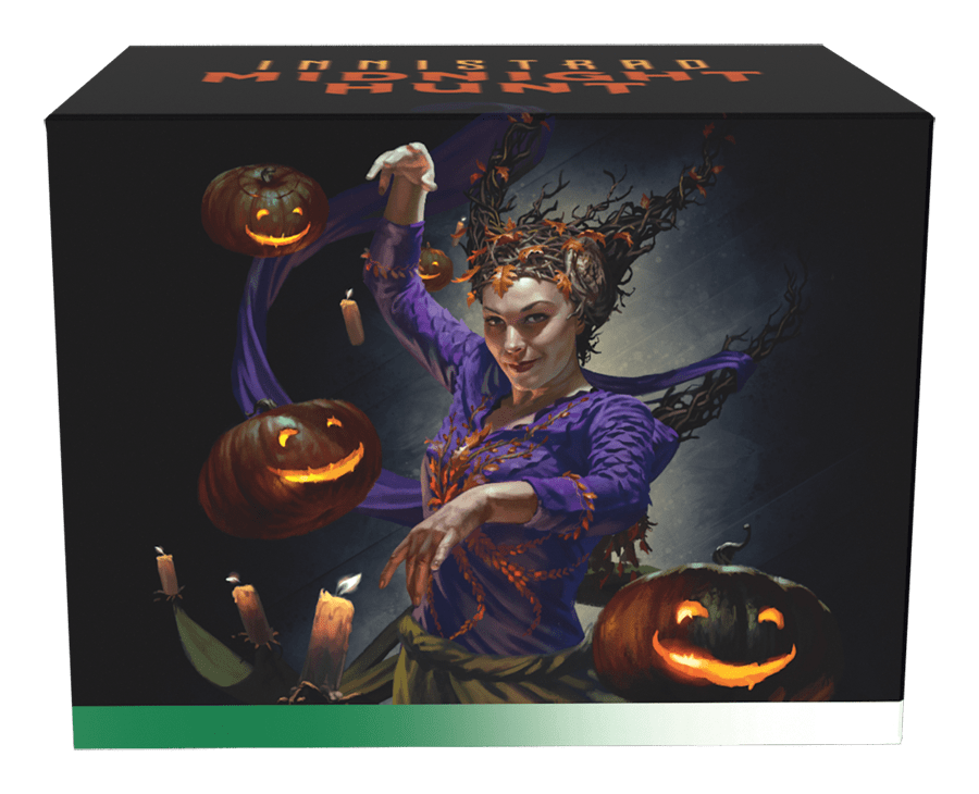 Para apoyar este popular formato multijugador, Wizards ha diseñado dos nuevos mazos de comandante en el mundo de Innistrad: Caza de Medianoche. Cada mazo contiene 100 cartas de borde negro, incluyendo 19 nuevas cartas inéditas. Cada mazo está diseñado para encajar perfectamente con la temática de Innistrad: Caza de Medianoche. Además, cada mazo contiene dos comandantes foil. Las nuevas cartas son legales en torneos Vintage y Legacy.