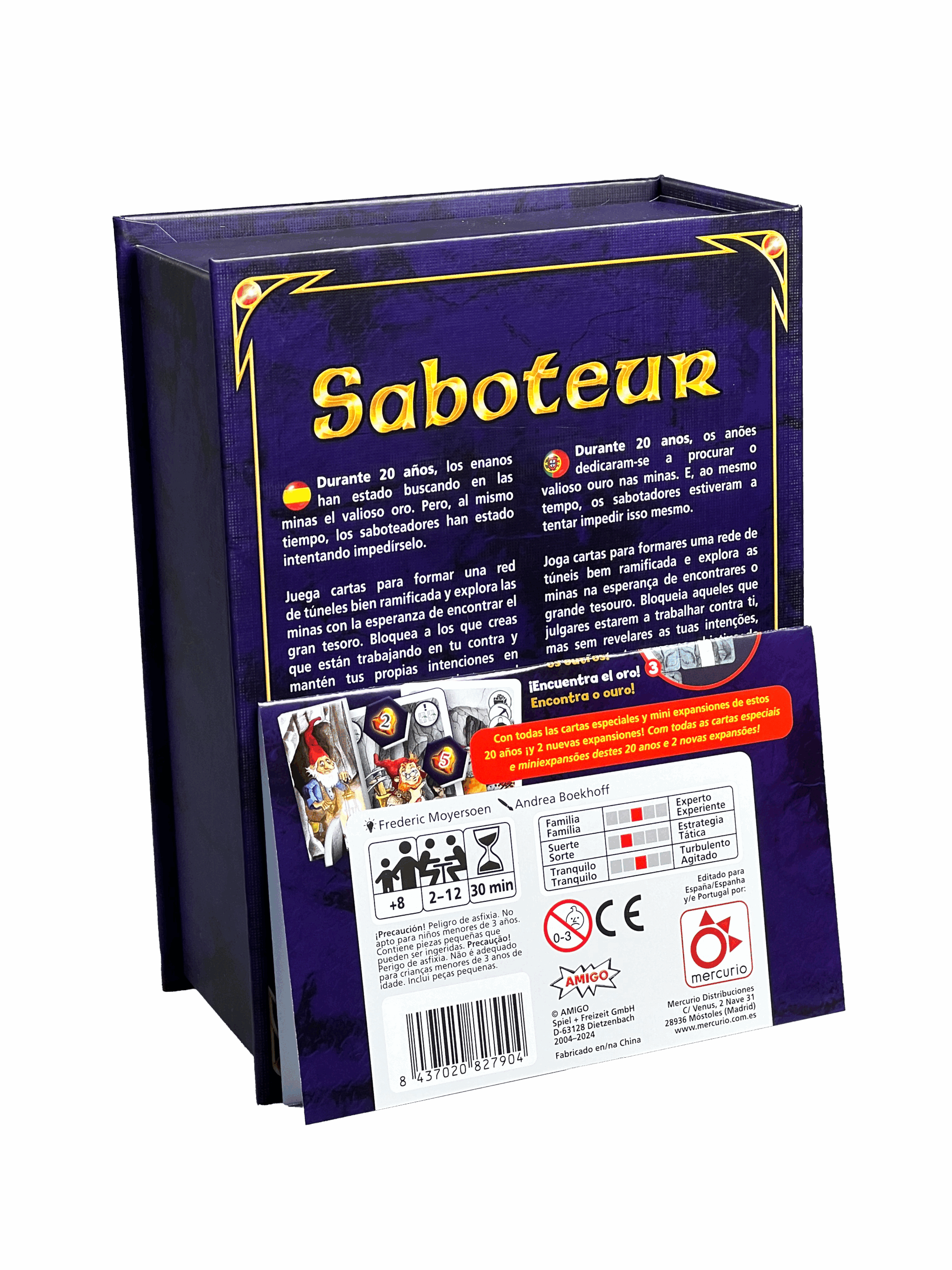 Durante 20 años, los enanos han estado buscando en las minas el valioso oro. Pero, al mismo tiempo, los saboteadores han estado intentando impedírselo. Juega cartas para formar una red de túneles bien ramificada y explora las minas con la esperanza de encontrar el gran tesoro. Bloquea a los que creas que están trabajando en tu contra y mantén tus propias intenciones en secreto, para que no te conviertas en el objetivo del sabotaje. Esta edición aniversario deluxe incluye todas las cartas especiales de los 20 años de Saboteur. Además, trae nuevas cartas de túnel y de destino, mini expansiones y variantes de juego que aportan giros sorprendentes y mucha variedad en el día a día de las minas. Mantente alerta y piensa bien en quién confíar, porque al final ¡solo cuenta el oro!