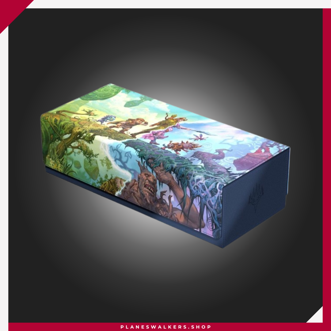 El Arkhive 1000+ Xenoskin de Ultimate Guard, con ilustraciones con licencia oficial del set «Lorwyn Eclipsed» de Magic: The Gathering, es la caja de almacenamiento masivo MTG perfecta para guardar y transportar varias cajas para mazo y/o una gran cantidad de cartas sueltas. La tapa completamente extraíble se asegura en ambos lados mediante un fuerte cierre magnético y el fiable mecanismo ZnapClaw de Ultimate Guard. Además, el resistente material Xenoskin y el forro interior de microfibra de alta calidad garantizan una excelente protección para hasta 1125 cartas doblemente enfundadas en fundas Ultimate Guard*, diez Boulder 100+ o seis Boulder 133+. Gracias a su capacidad, el Arkhive 1000+ Xenoskin es también la caja ideal para almacenar un cube.