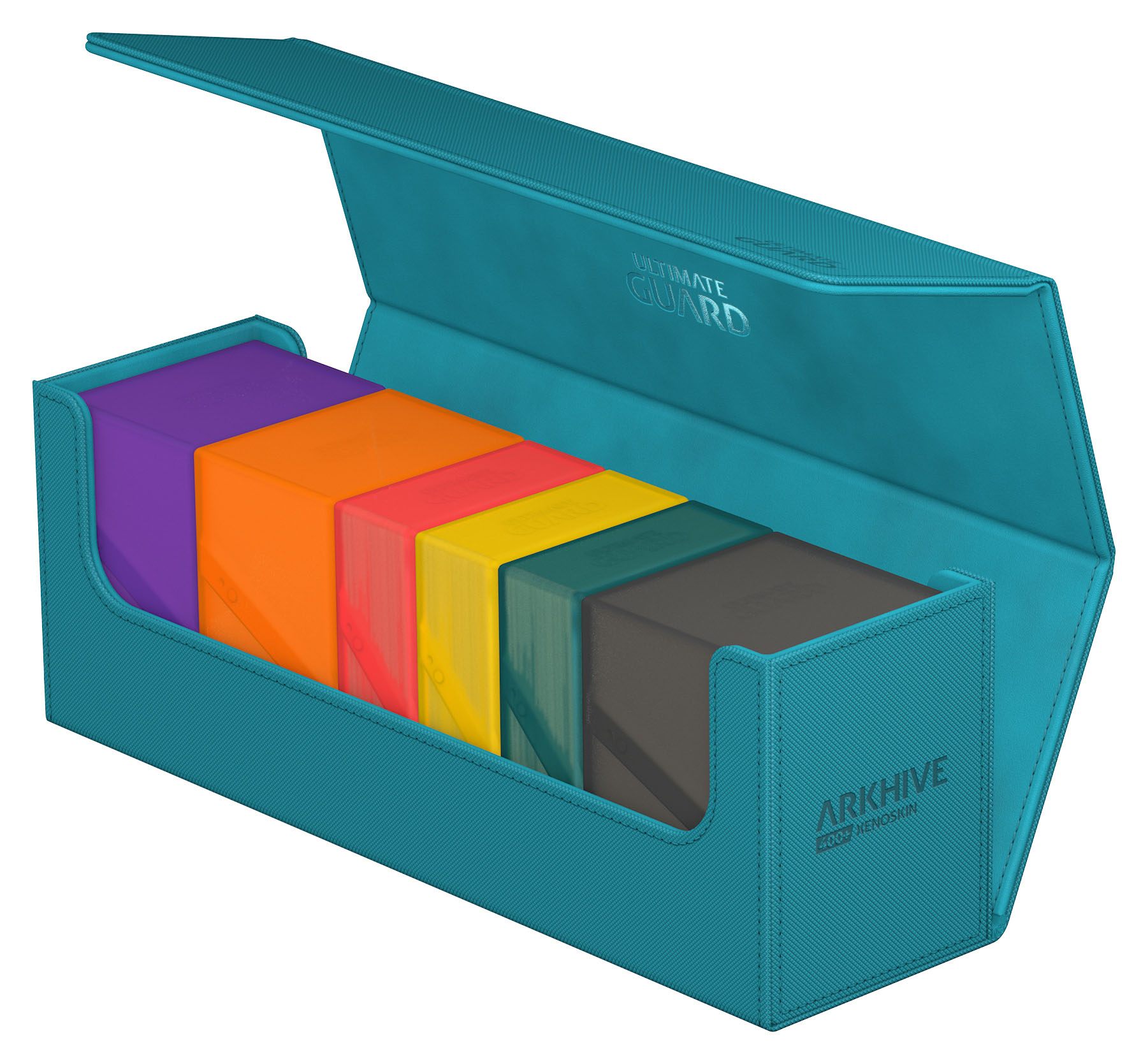Enseña tus colores de adentro hacia afuera con nuestro diseño monocolor vibrante y elegante. Optimizado para contener más de 450 cartas en doble funda o más de 500 cartas en una sola funda, o más de 850 cartas sin funda en tamaño estándar. El Arkhive nunca te defraudará. *