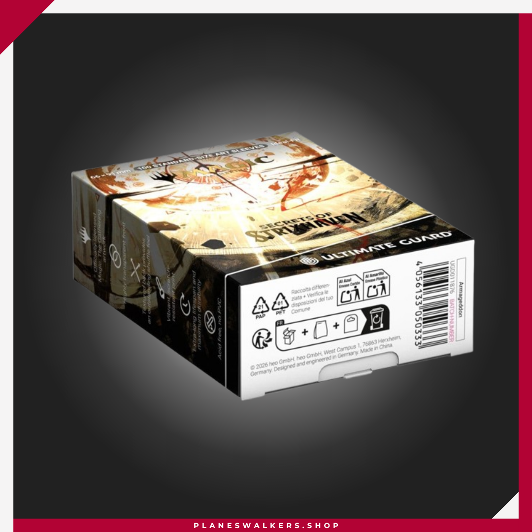 Las Ultimate Guard Art Sleeves son fundas premium para MTG con ilustraciones con licencia oficial del set «Secrets of Strixhaven» de Magic: The Gathering. La parte trasera texturizada ofrece una excelente experiencia de barajado, mientras que la impresión, de colores intensos, es resistente a arañazos y al desgaste. La parte frontal extraclara garantiza una visibilidad perfecta de las cartas, y los materiales de alta calidad aseguran una durabilidad especialmente larga de las fundas.