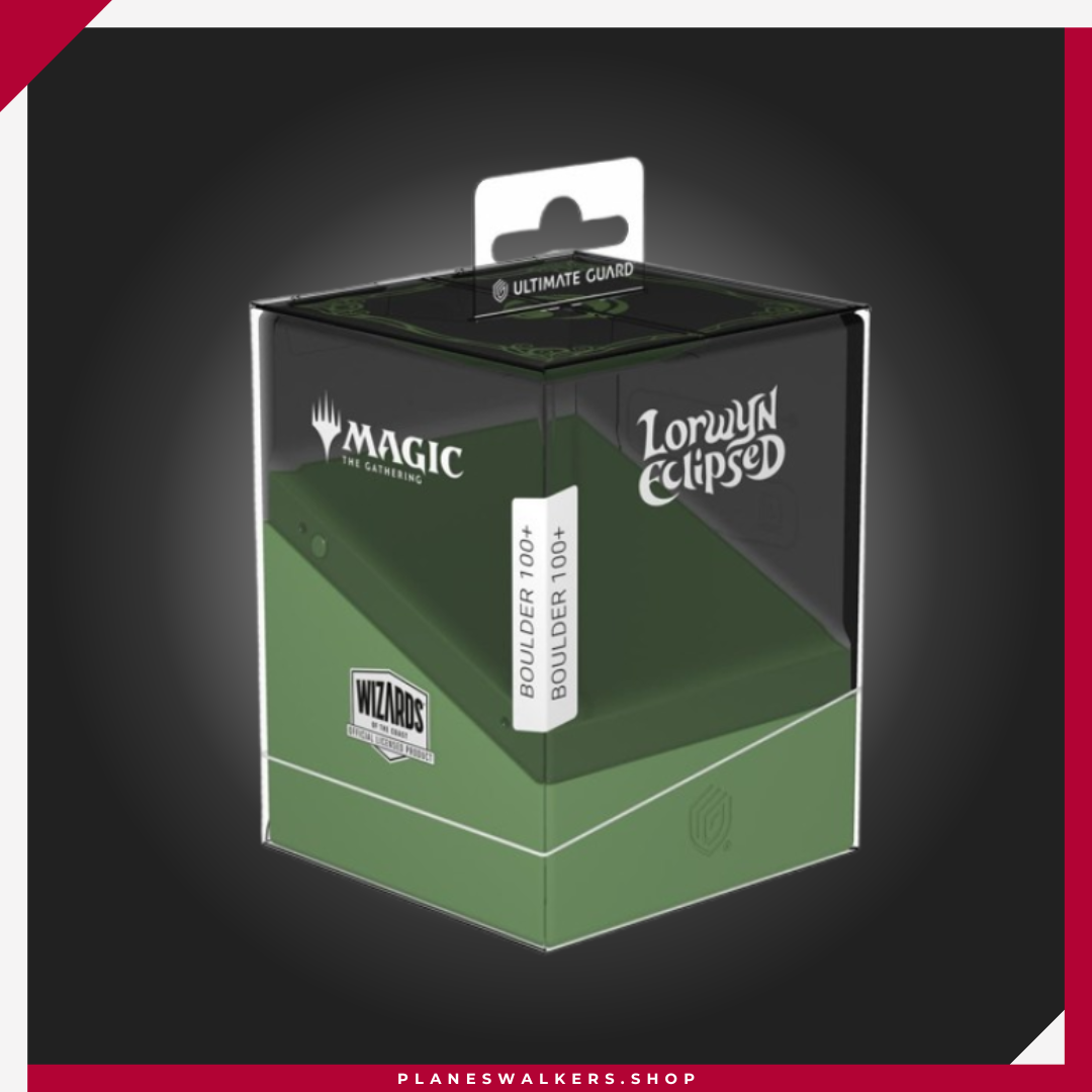 El Boulder 100+ de Ultimate Guard es una caja para mazo MTG duradera y fiable, con ilustraciones con licencia oficial del set «Lorwyn Eclipsed» de Magic: The Gathering. A pesar de su cierre seguro, el Boulder 100+ es fácil y cómodo de abrir, y puede contener 100 cartas doblemente enfundadas en fundas Ultimate Guard*, lo que lo convierte en la caja para mazo ideal para todos los formatos de Magic (Commander/EDH, Modern, Standard, etc.). Diseñado para combinarse con todas las cajas de almacenamiento masivo de Ultimate Guard, el Boulder encaja especialmente bien en Arkhive, Superhive y Flip’n’Tray.