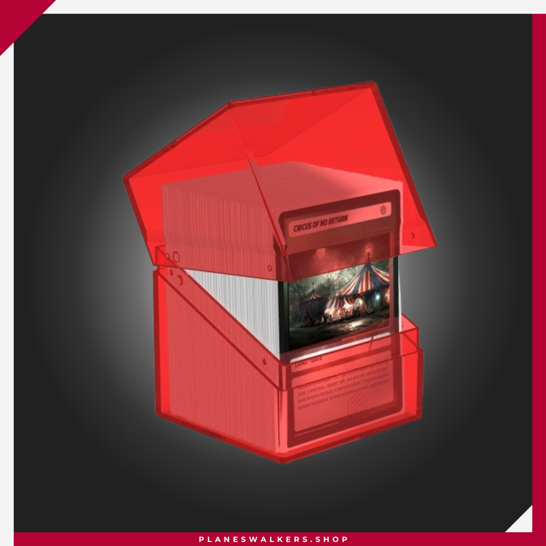 Caja solida de cartas práctica y compacta con una superficie agradable al tacto y de fácil apertura. Puede contener hasta 100 cartas de doble funda.