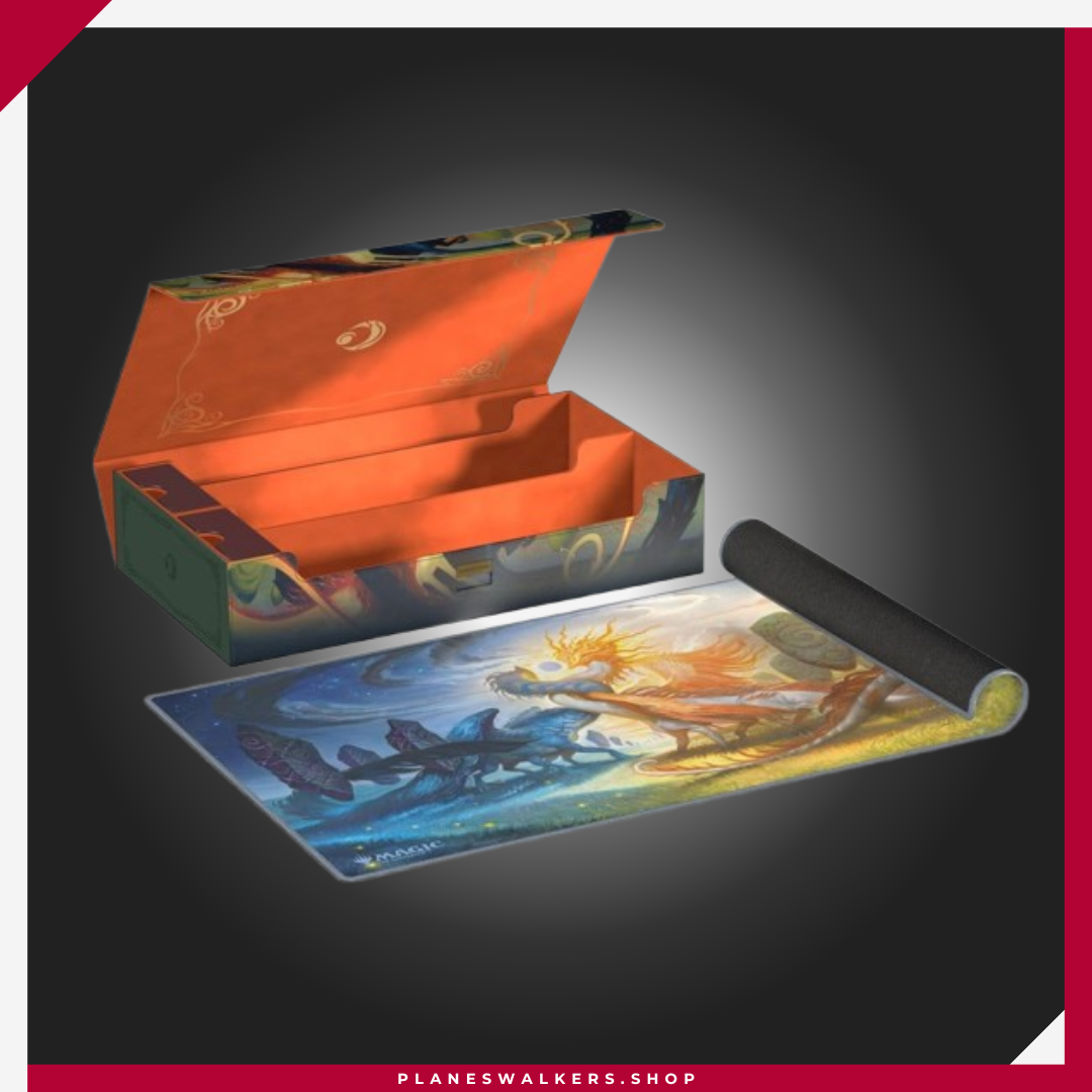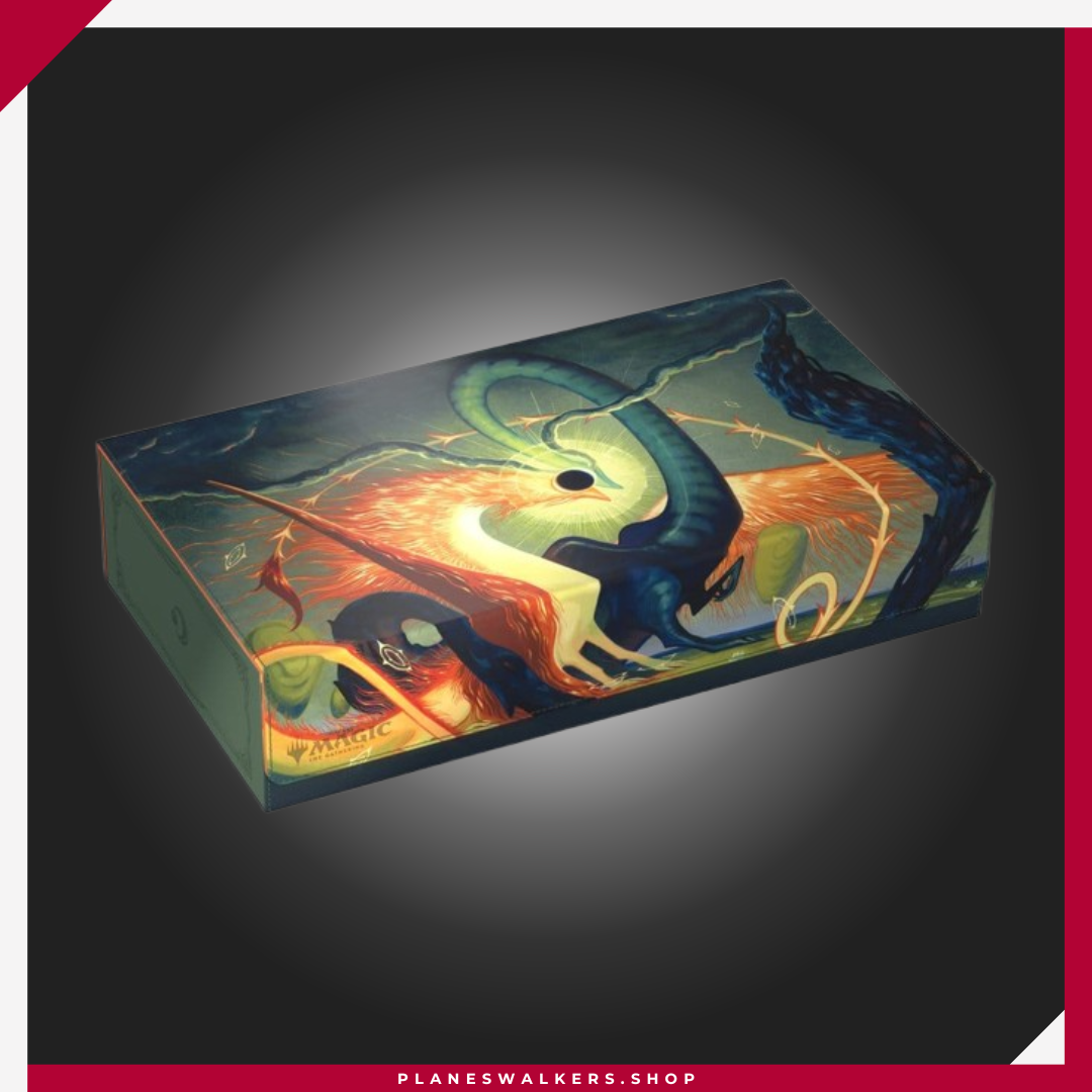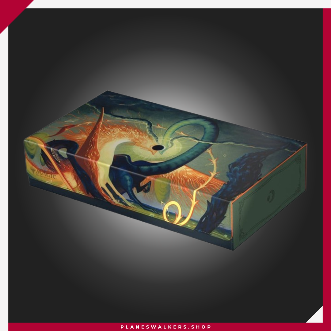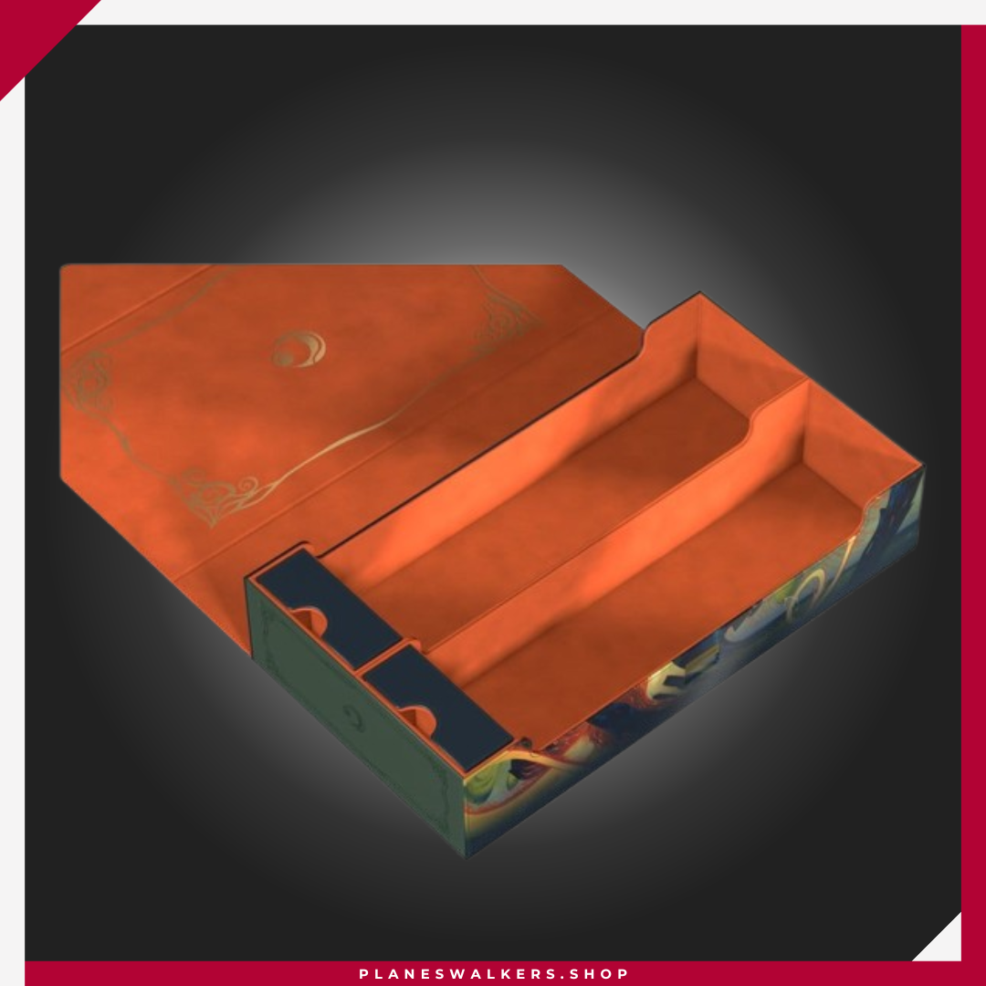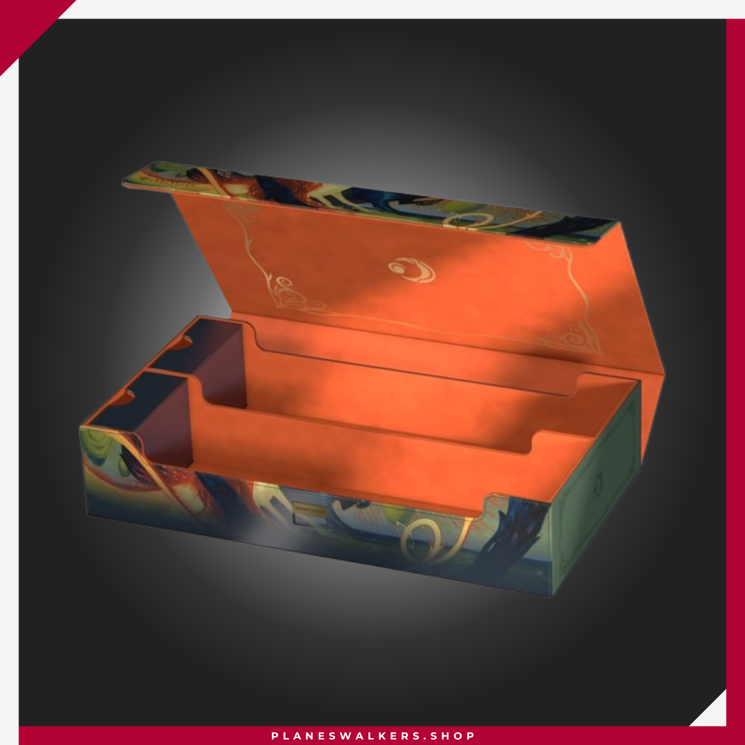 El Omnihive 1000+ Xenoskin de Ultimate Guard, con ilustraciones con licencia oficial del set «Lorwyn Eclipsed» de Magic: The Gathering, es la caja de almacenamiento masivo MTG definitiva para mazos, cartas y accesorios. Diseñada para guardar simultáneamente varias cajas para mazo y/o tapetes, cuenta con dos bandejas magnéticas para dados, apilables y de posición flexible, situadas sobre dos compartimentos, además de material Xenoskin resistente, un forro interior de microfibra de alta calidad, un cierre magnético fuerte y el fiable mecanismo ZnapClaw de Ultimate Guard. Con capacidad para ocho Sidewinder 100+ o seis Sidewinder 133+, el Omnihive 1000+ Xenoskin también puede albergar hasta 1000 cartas doblemente enfundadas en fundas Ultimate Guard*, lo que lo convierte en la caja ideal para un cube.