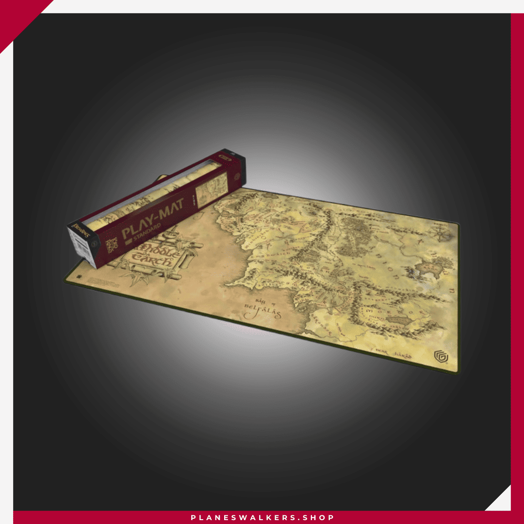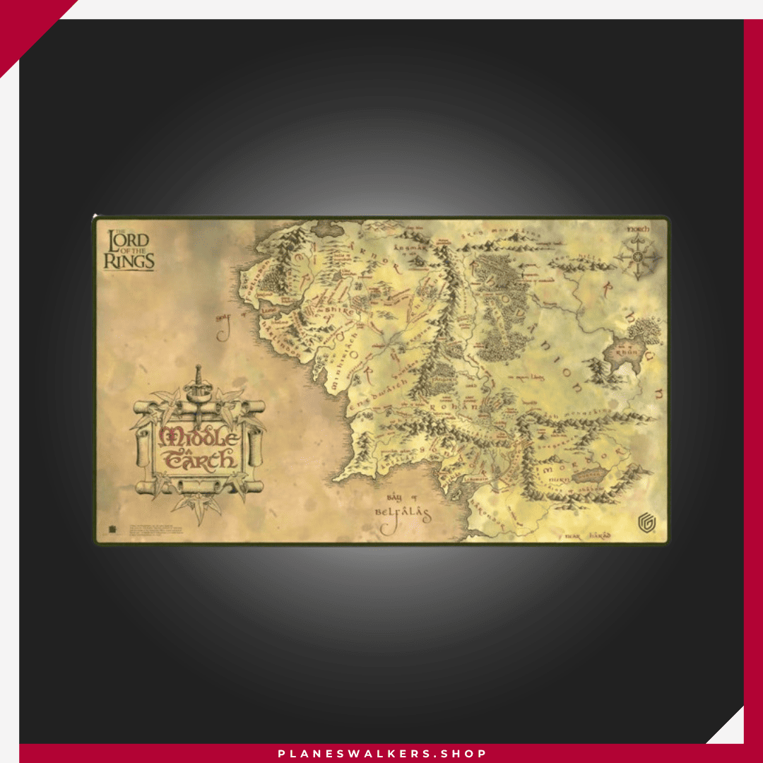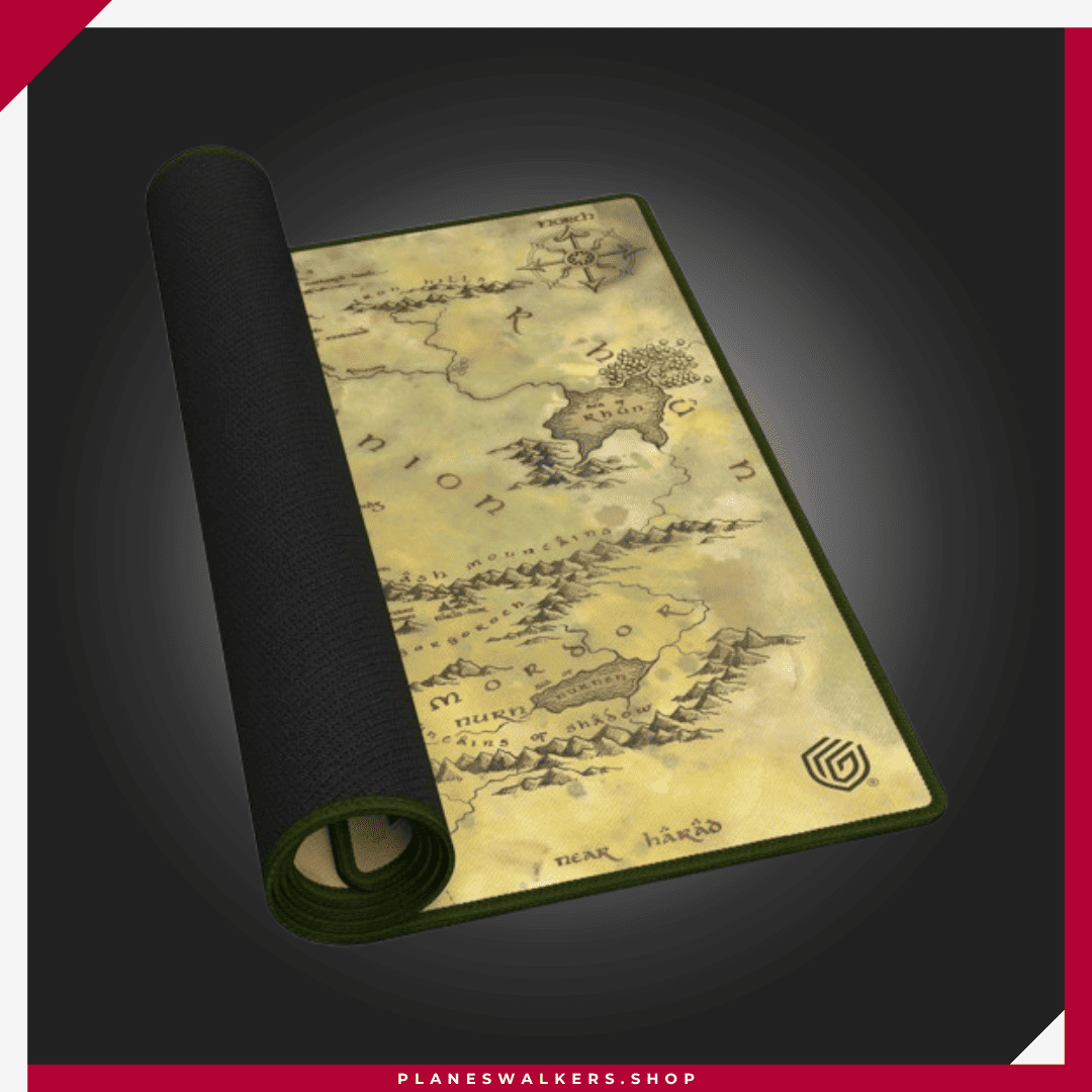 El Play-Mat de 61 x 35 cm de la edición oficial The Lord of the Rings™ «Places of Middle-earth» de Ultimate Guard protege cartas y fundas durante el juego y mejora la experiencia de juego gracias a su reverso antideslizante, mientras que los bordes cosidos garantizan una mayor durabilidad.