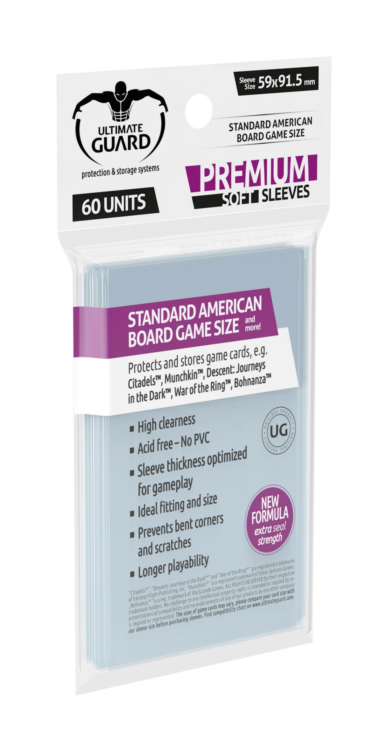 60 fundas para conservar y proteger las cartas del juego de mesa americano; tamaño estándar (por ejemplo Citadels™, Munchkin™, Descent: Journeys in the Dark™, War of the Ring™, Bohnanza™, aparte de otros).
