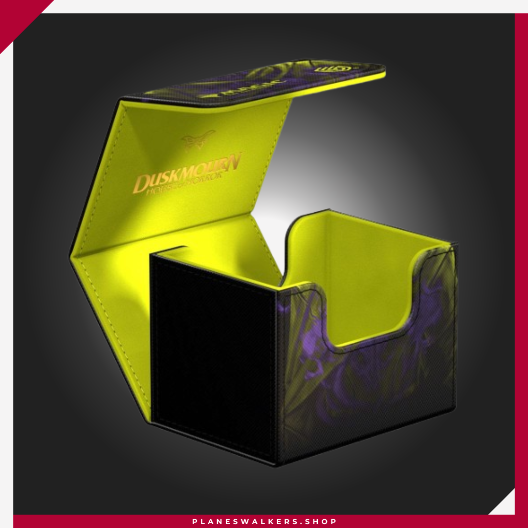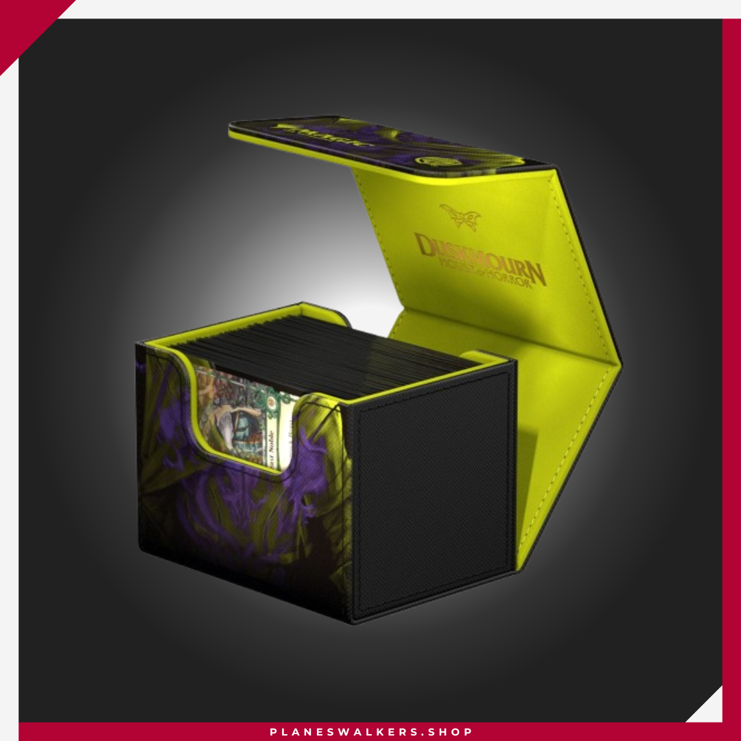Las misteriosas ilustraciones de doble exposición de Duskmourn: House of Horror no sólo inspiran las cartas de la nueva colección de Magic: The Gathering, ¡sino también nuestras cajas del mazo Sidewinder! ¿Te unirás al Rescue Squad en torno a Tyvar, Zimone, Kaito y The Wandering Rescuer, te pondrás del lado de los legendarios villanos en la interminable casa encantada… o simplemente crees que Kona, Rescue Beastie es mona? ¡Tú eliges! Nuestros Sidewinder 100+ Xenoskin están impresos a todo color con ilustraciones con licencia oficial de Magic: The Gathering. Las cajas para mazo están hechas de material resistente Xenoskin y tienen un interior de microfibra de calidad. Las Sidewinder ofrecen espacio para 100 cartas de doble funda o 120 de funda sencilla, ¡y combinan a la perfección con la Omnihive 1000+ Xenoskin de la serie Duskmourn!