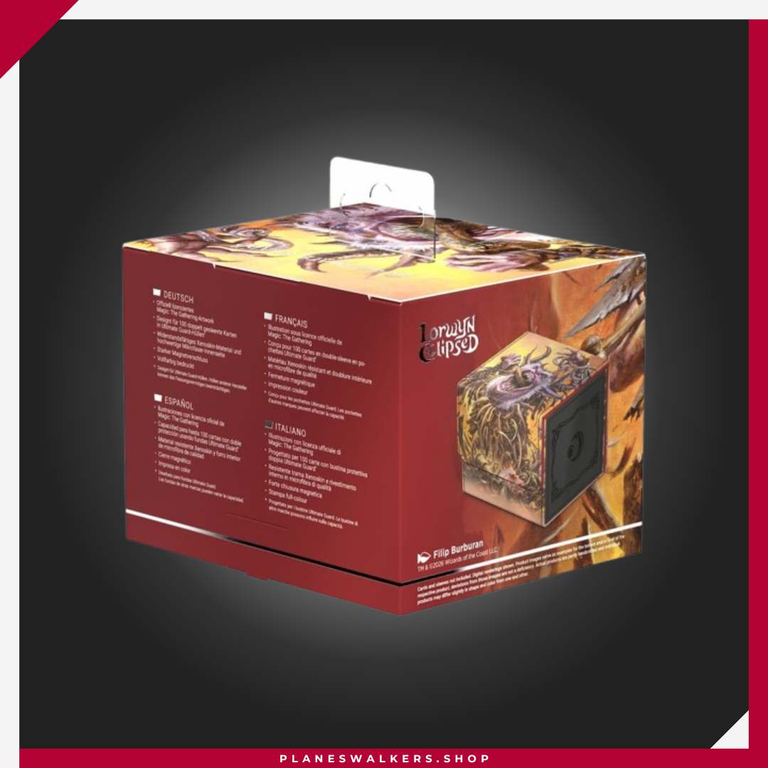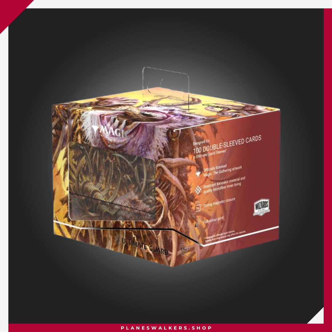 El Sidewinder 100+ Xenoskin de Ultimate Guard es un deck box premium de Magic: The Gathering que ofrece una protección excepcional de la carta con su resistente material Xenoskin, interior de microfibra de alta calidad y fuerte cierre magnético, todo mientras proporciona un acceso fácil y cómodo a las cartas de su interior. Con espacio para 100 cartas con doble funda (en fundas Ultimate Guard*) y con ilustraciones con licencia oficial de la colleción «Lorwyn Eclipsed» de Magic: The Gathering, el Sidewinder 100+ Xenoskin es el deck box MTG perfecto para todos los formatos de Magic (Commander/EDH, Modern, Standard, etc.). Diseñado para combinarse con las cajas de almacenamiento masivo Omnihive, Superhive y Smarthive de Ultimate Guard.