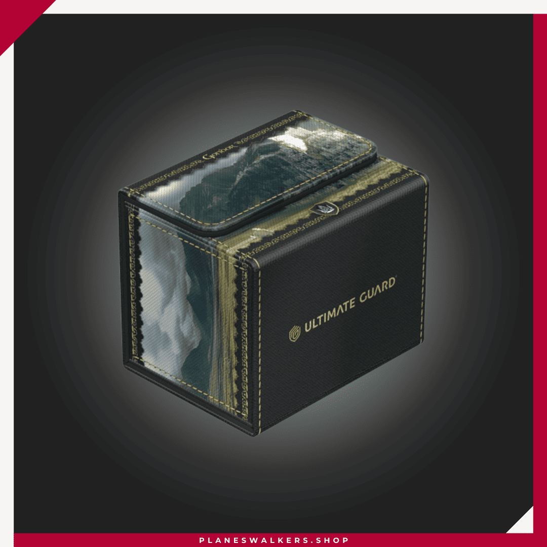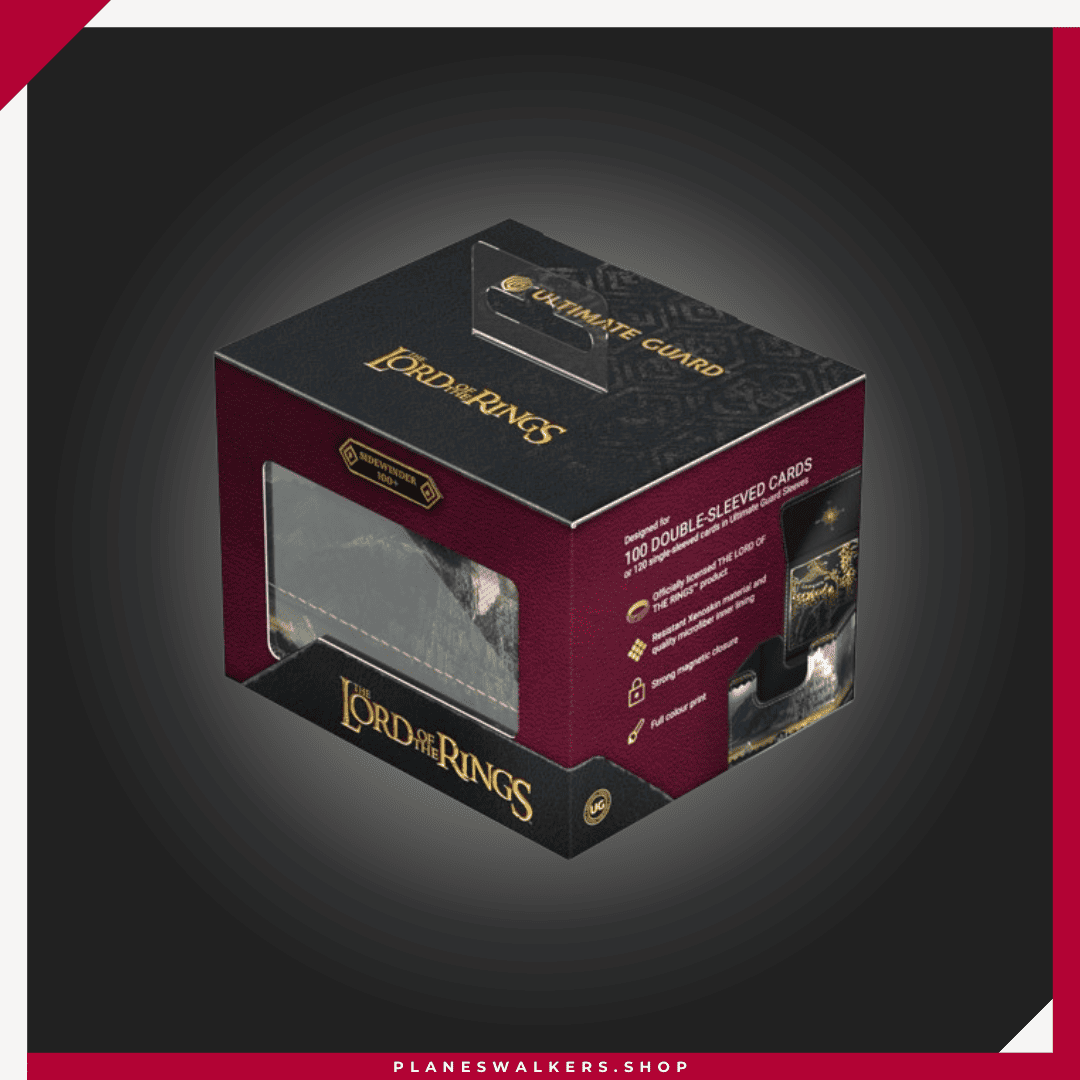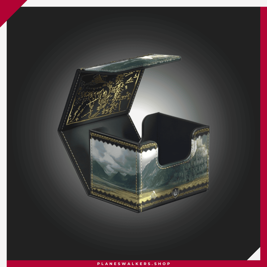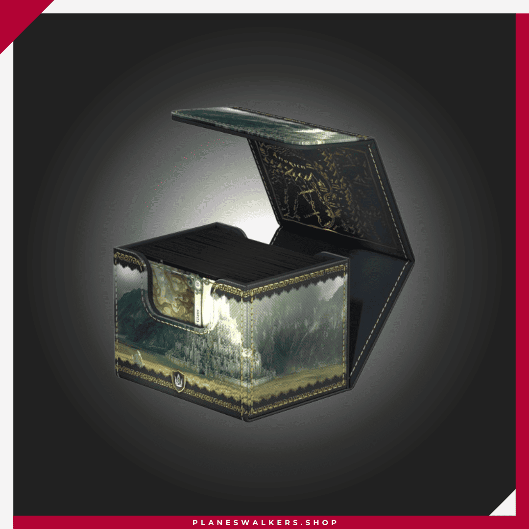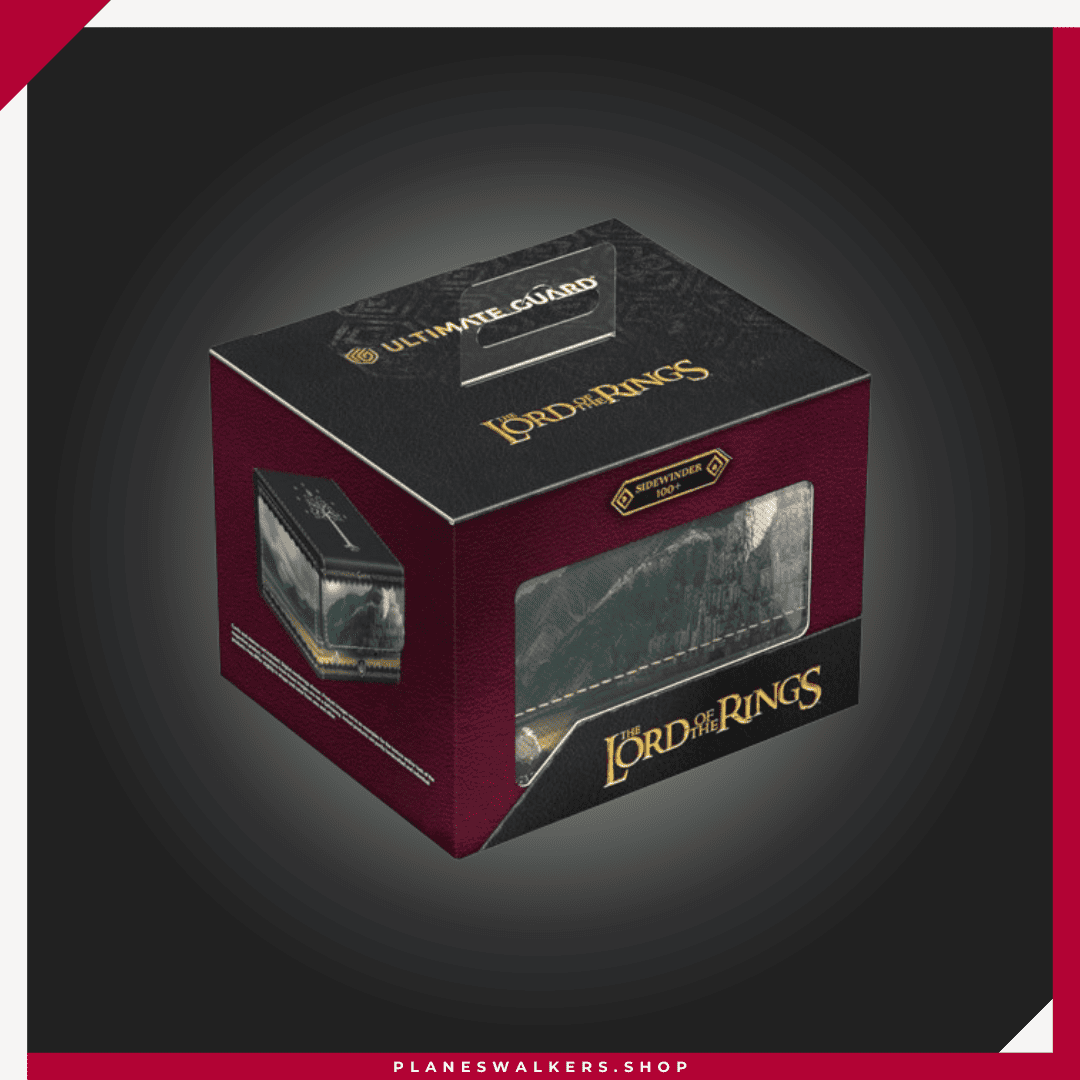 El Sidewinder 100+ Xenoskin es una caja para mazo TCG de alta calidad que ofrece protección premium para las cartas gracias a su resistente material Xenoskin, su forro interior de microfibra y su fuerte cierre magnético, todo mientras proporciona un acceso fácil y cómodo a las cartas del interior. Las cajas para mazo de la edición oficial The Lord of the Rings™ «Places of Middle-earth» de Ultimate Guard están impresas a todo color y están optimizadas para contener hasta 100 cartas con doble funda en fundas Ultimate Guard*.
