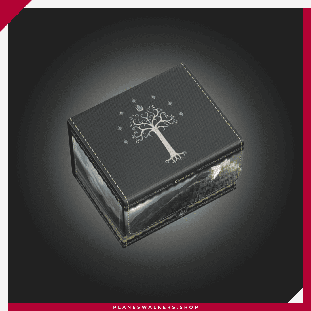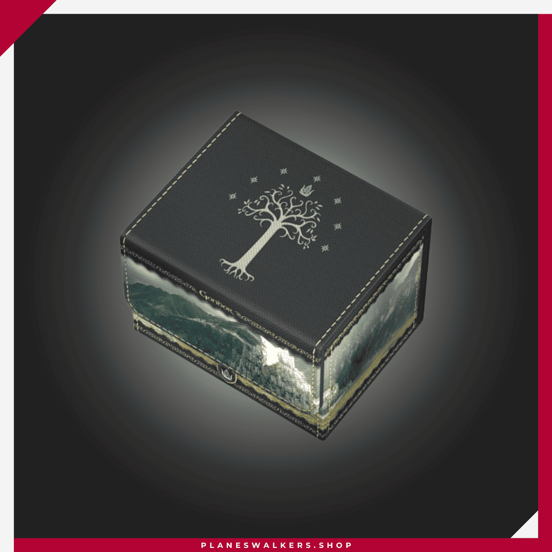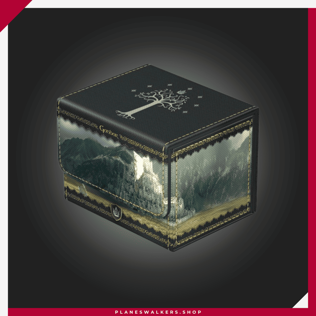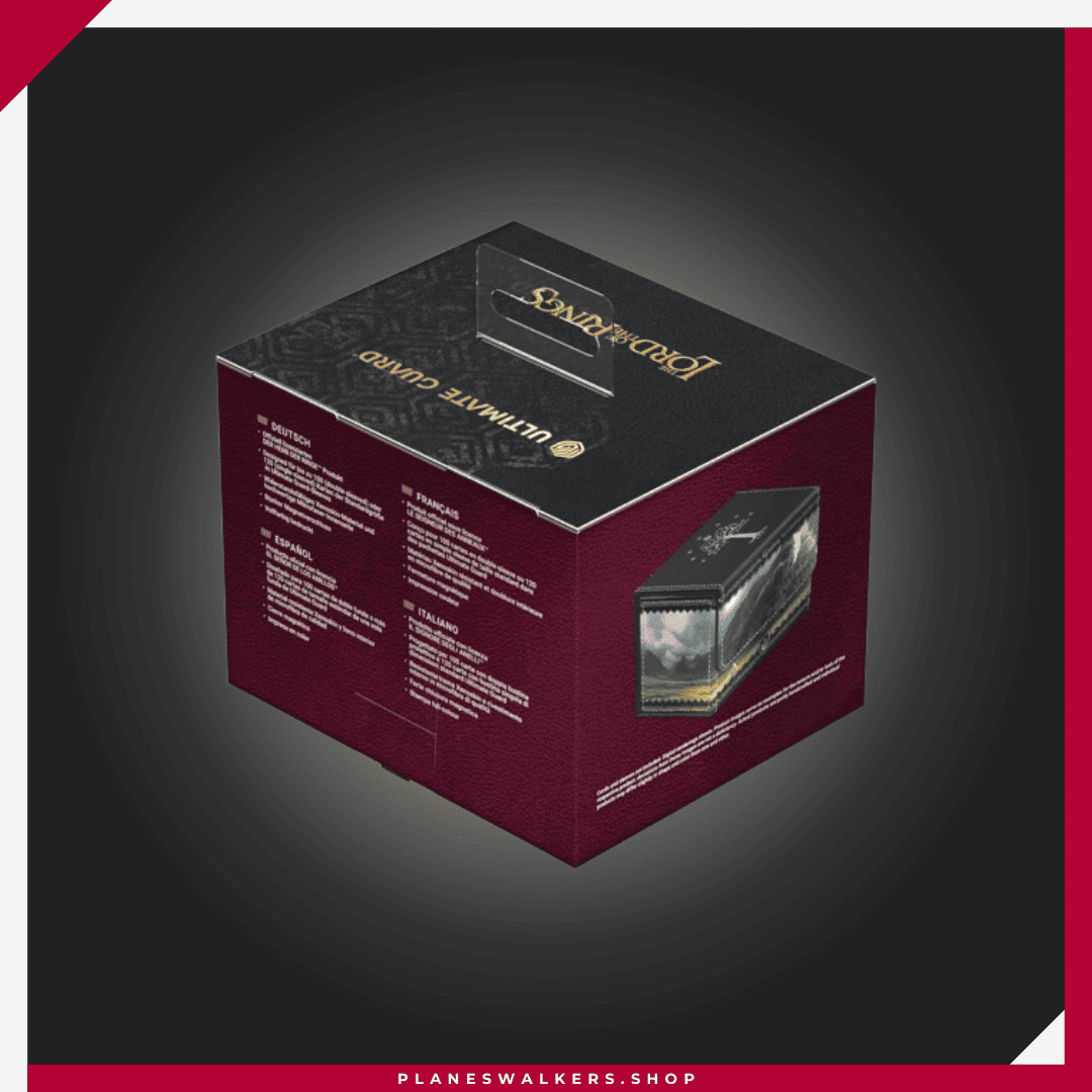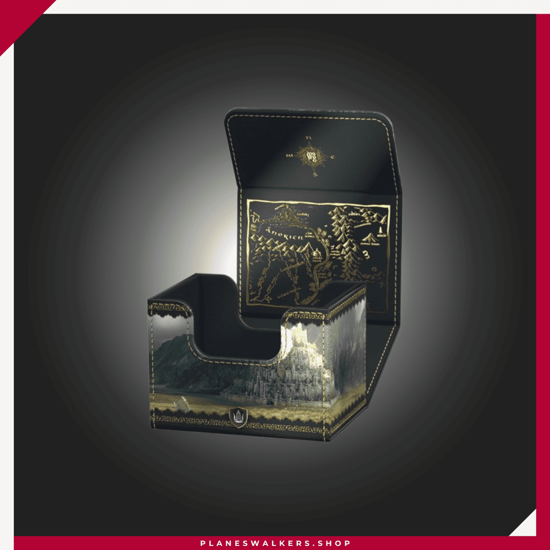 El Sidewinder 100+ Xenoskin es una caja para mazo TCG de alta calidad que ofrece protección premium para las cartas gracias a su resistente material Xenoskin, su forro interior de microfibra y su fuerte cierre magnético, todo mientras proporciona un acceso fácil y cómodo a las cartas del interior. Las cajas para mazo de la edición oficial The Lord of the Rings™ «Places of Middle-earth» de Ultimate Guard están impresas a todo color y están optimizadas para contener hasta 100 cartas con doble funda en fundas Ultimate Guard*.