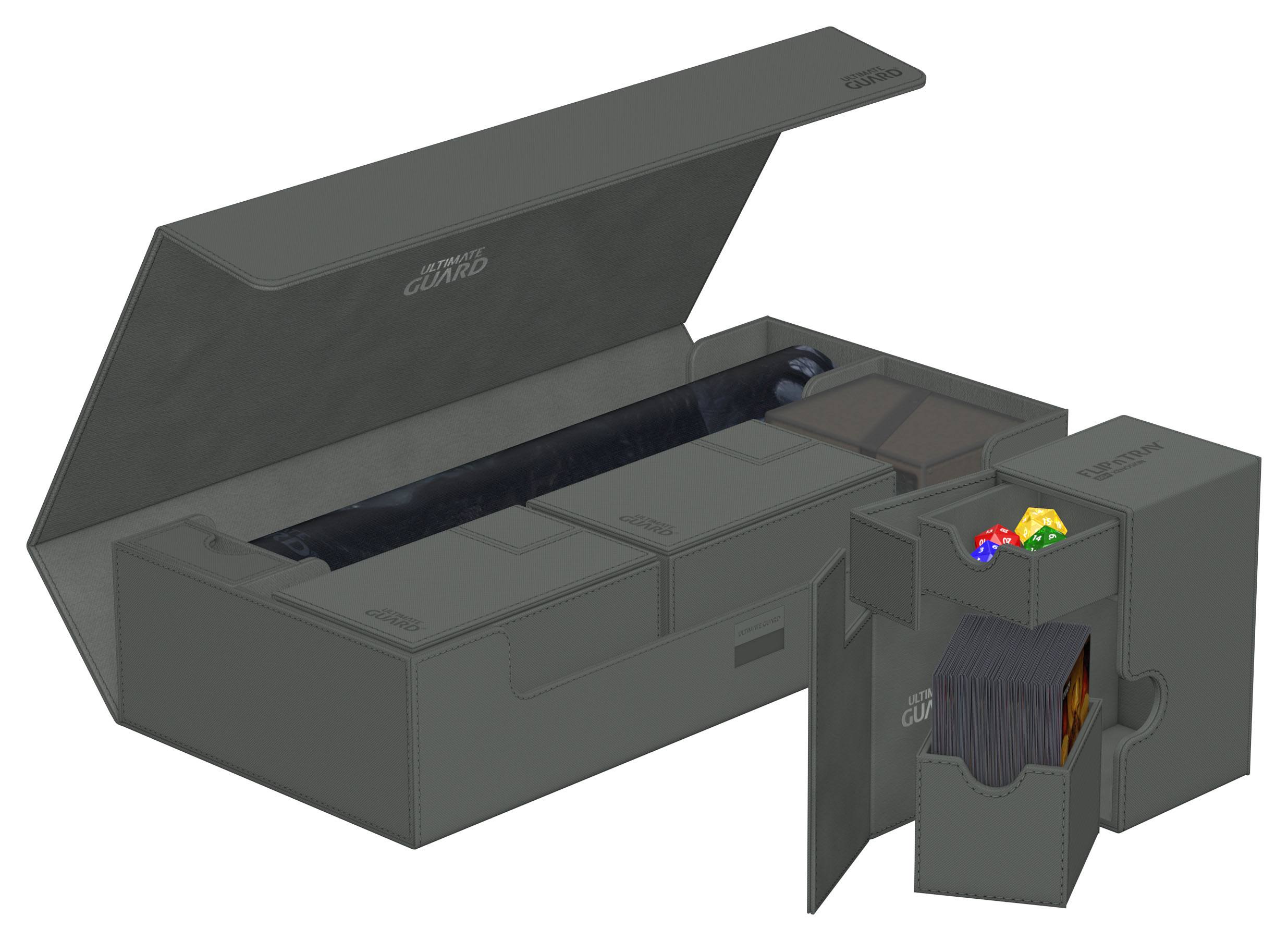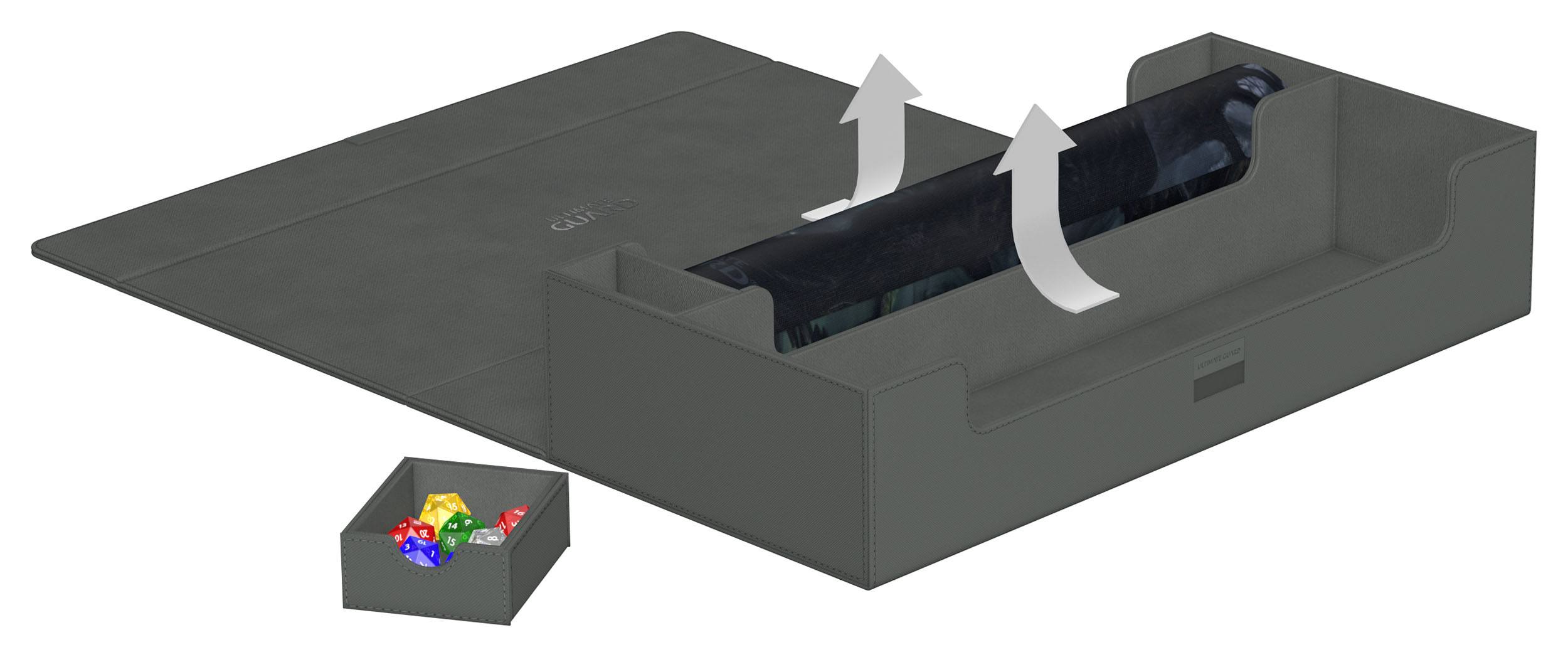 ¡La caja definitiva que cumple con todas tus necesidades de almacenamiento! Con espacio suficiente para todo lo que necesitas: compartimentos para varios portamazos y cajas, dos tapetes y accesorios como dados, tokens y contadores.