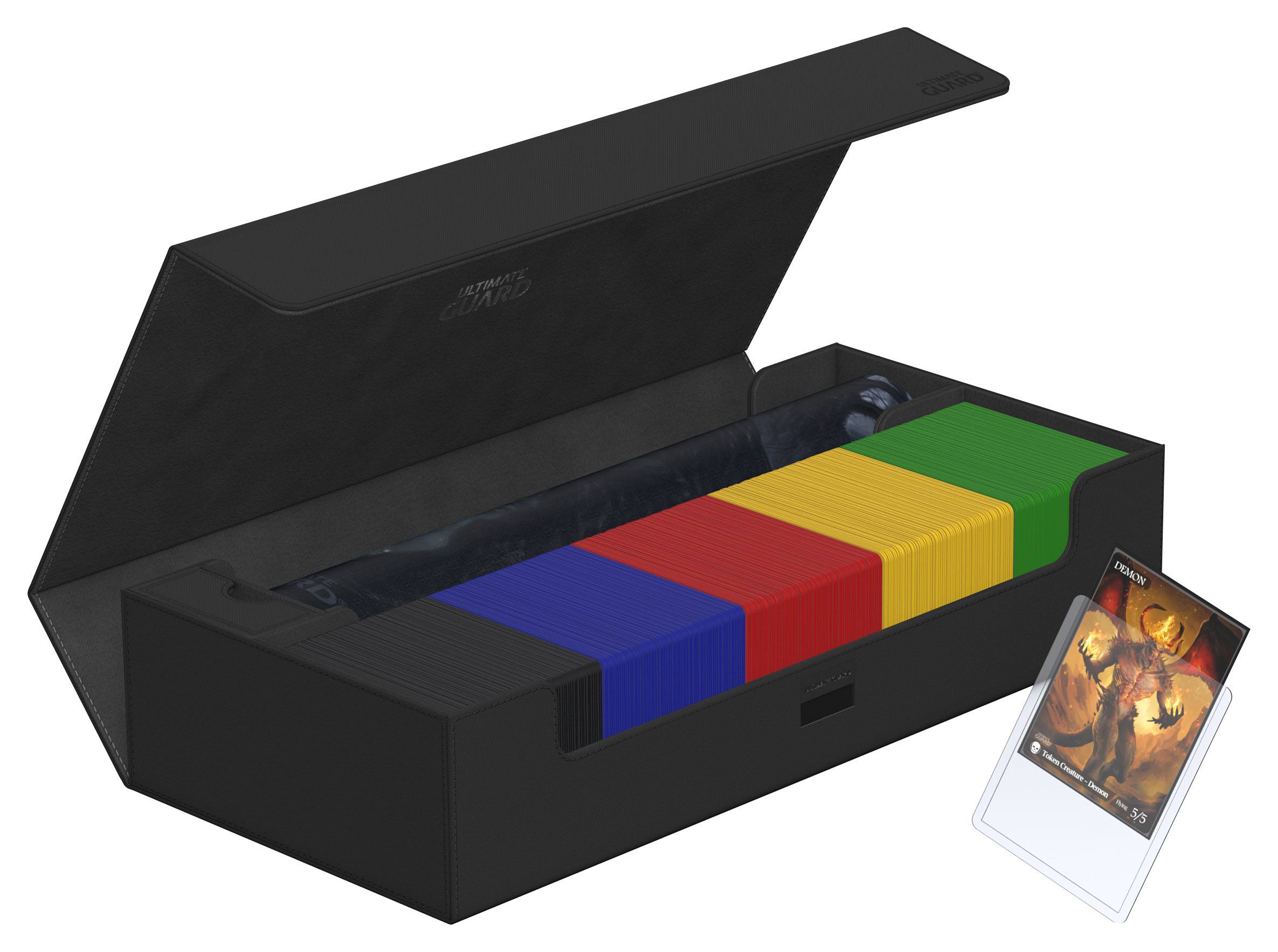 • Puede contener hasta 550 cartas (doble funda) o 650 cartas (funda única) tamaño estándar en fundas Ultimate Guard*