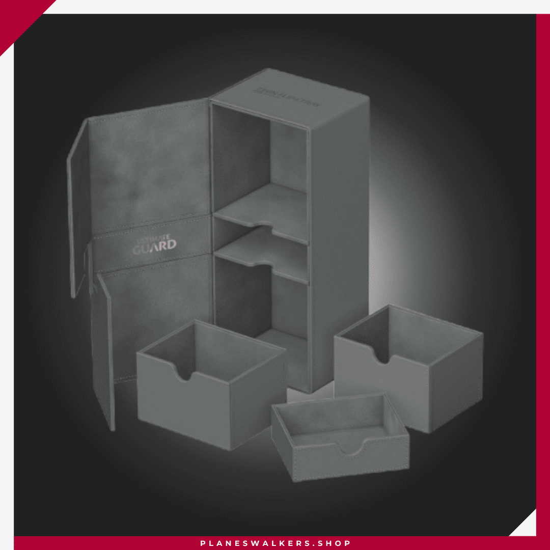 • Diseñado para 266 cartas de tamaño estándar de doble funda o 315+ cartas de una sola funda de Ultimate Guard *