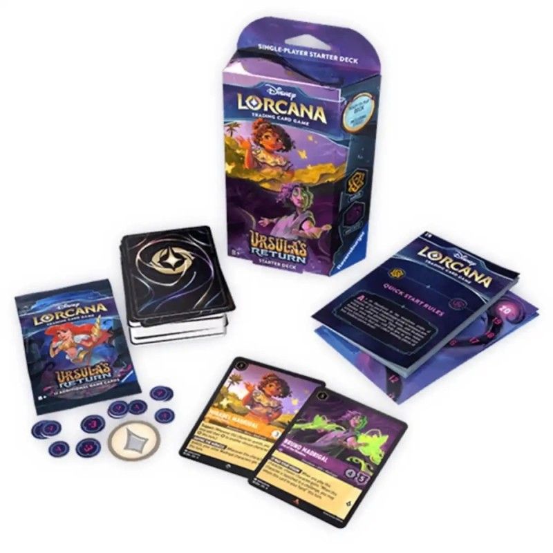 Los mazos de inicio, listos para jugar, contienen un mazo preconstruido con una lista específica de 60 cartas. Si eres nuevo en el mundo de los juegos de cartas coleccionables o si quieres experimentar el juego con un mazo diseñado y probado por el Equipo Disney Lorcana, esta es la mejor forma de empezar.