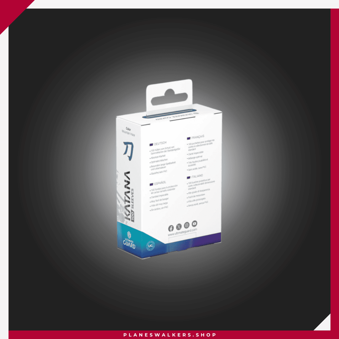 Las Katana Sleeves de Ultimate Guard son fundas de alta calidad para cartas TCG, reconocidas por su durabilidad y sensación de barajado inigualable. Diseñadas para cartas de tamaño estándar (Magic: The Gathering, Pokémon, Lorcana, One Piece, Flesh and Blood, entre otras), ofrecen una claridad impecable en la parte frontal y un reverso opaco que garantiza la máxima protección y uniformidad. Cumplen con los estándares más exigentes de juego competitivo, ideales incluso para torneos extensos de alto nivel.